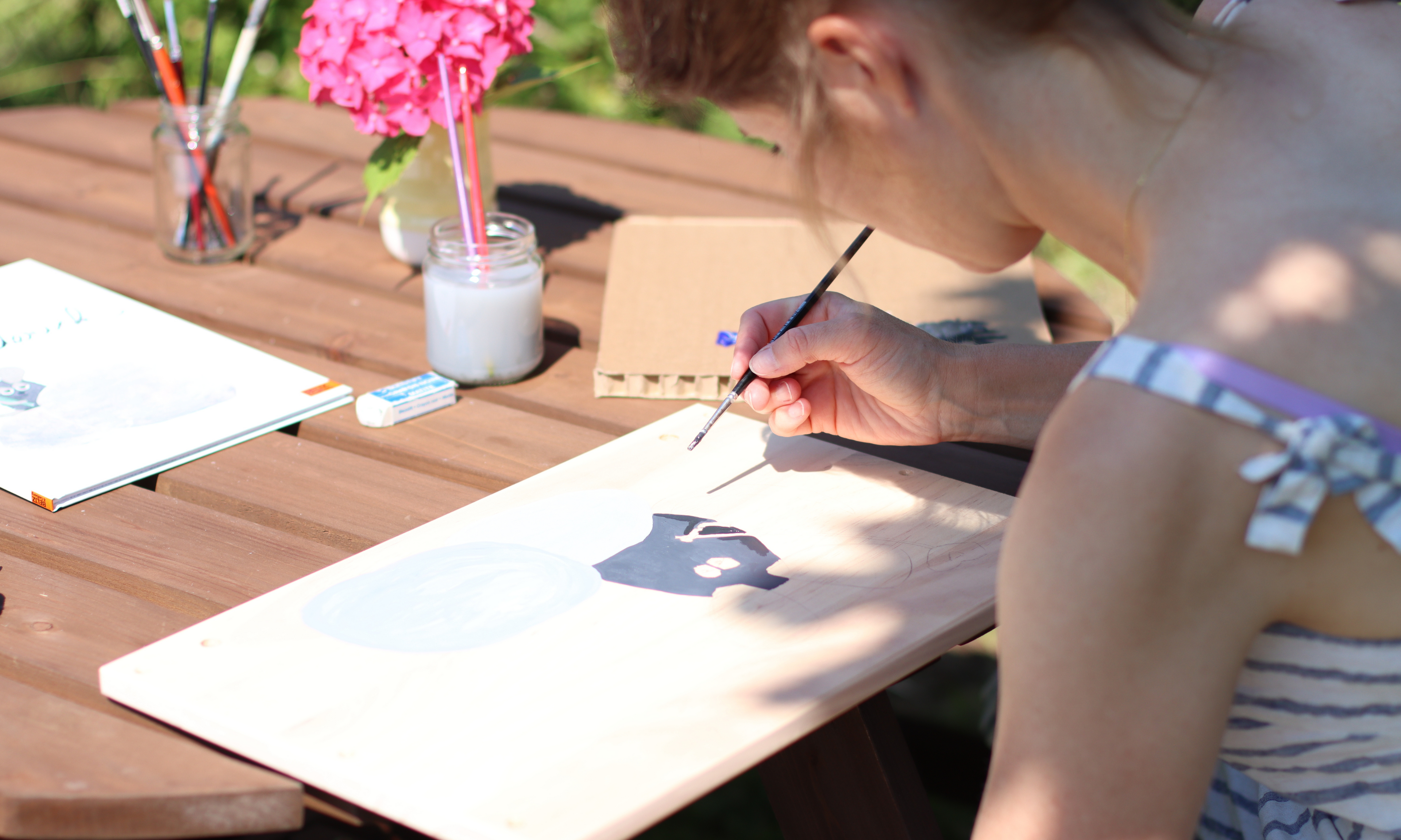 Jede Spielzeugkiste ist ein Unikat – liebevoll bemalt mit dem Namen des Kindes und einem Motiv aus einem Kinderbuch. Im Innern wartet das Buch selbst – damit die Kiste nicht leer, sondern voller Geschichte ankommt.